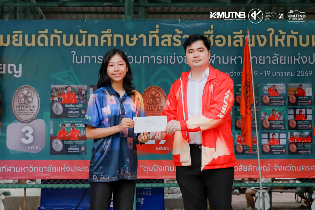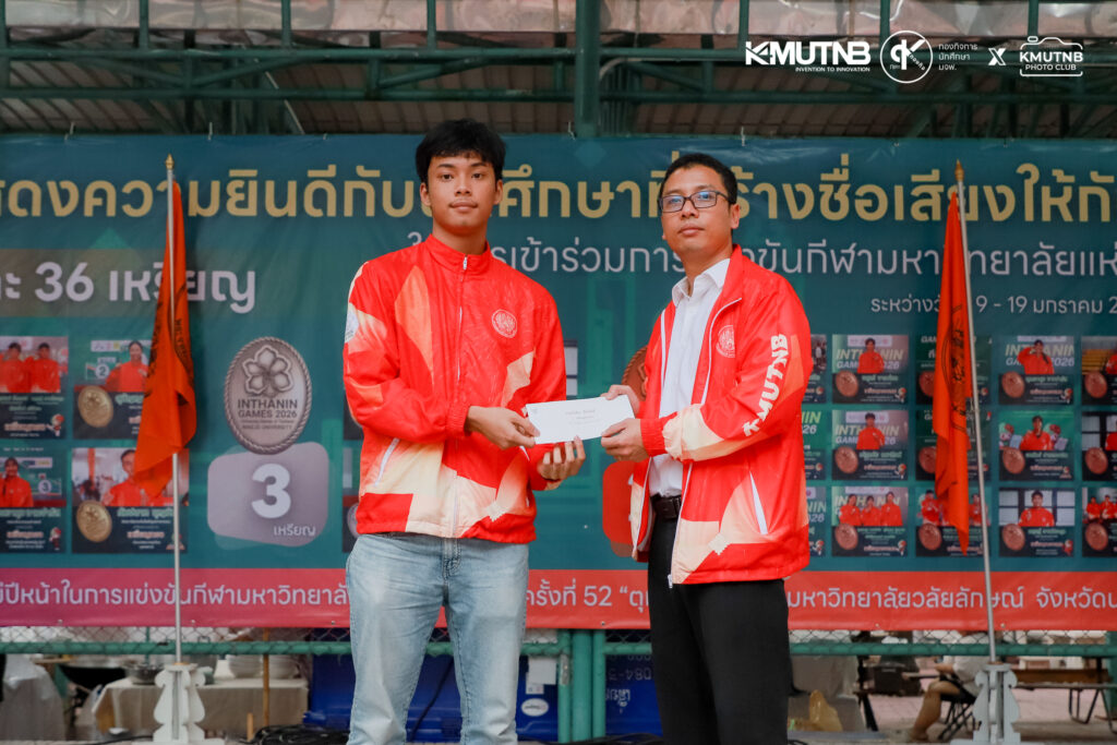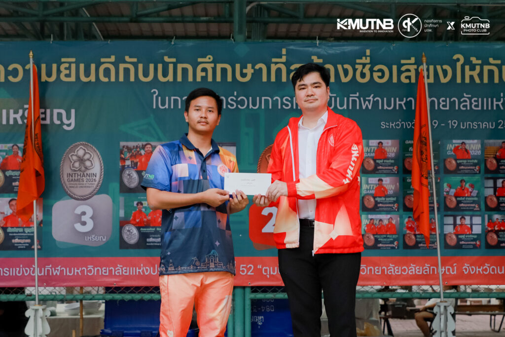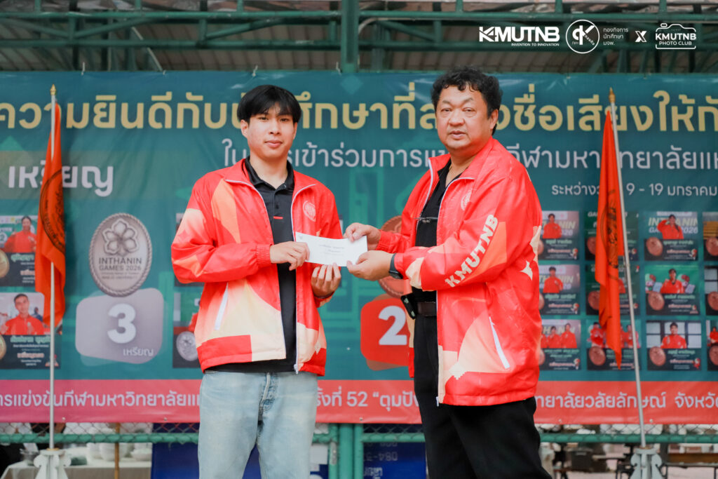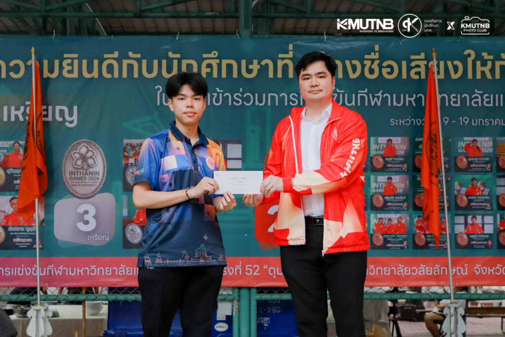 เมื่อวันที่ 30 มกราคม 2569 ณ ลานสวนปาล์ม มจพ. รศ.ดร.ธีรวัช บุณยโสภณ รองอธิการบดีฝ่ายกิจการนักศึกษาและศิษย์เก่าสัมพันธ์ มจพ. เป็นประธานในพิธีมอบรางวัลแก่นักกีฬาที่ได้รับเหรียญรางวัลจากการแข่งขันกีฬามหาวิทยาลัยแห่งประเทศไทย ครั้งที่ 51 “อินทนิลเกมส์”
