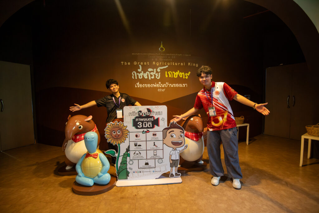 ในช่วงบ่าย หลังจากพักรับประทานอาหาร กิจกรรมได้ดำเนินต่อไปด้วยการเสริมสร้างความคิดสร้างสรรค์ผ่านกิจกรรมนันทนาการ จากนั้นคณะนักศึกษาได้เข้าศึกษาเรียนรู้ภายใน พิพิธภัณฑ์ในอาคาร ซึ่งจัดแสดงนิทรรศการอันทรงคุณค่า ได้แก่ โซน “กษัตริย์ เกษตร”, “ตามรอยพ่อ” และ “นวัตกรรมของพ่อ” พร้อมทั้งรับชมภาพยนตร์ 3 มิติ เพื่อซึมซับพระอัจฉริยภาพและพระมหากรุณาธิคุณของพระบาทสมเด็จพระบรมชนกาธิเบศร มหาภูมิพลอดุลยเดชมหาราช บรมนาถบพิตร ที่มีต่อการเกษตรไทย