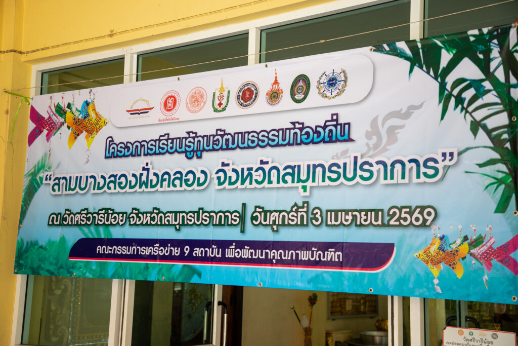 สมุทรปราการ – เมื่อวันที่ 3 เมษายน 2569 กองกิจการนักศึกษา มหาวิทยาลัยเทคโนโลยีพระจอมเกล้าพระนครเหนือ (มจพ.) นำตัวแทนผู้นำนักศึกษา เข้าร่วมโครงการ “เรียนรู้ทุนวัฒนธรรมท้องถิ่น สามบางสองฝั่งคลอง จังหวัดสมุทรปราการ” ณ วัดศรีวารีน้อย อำเภอบางเสาธง จังหวัดสมุทรปราการ ร่วมกับ ร่วมกับเครือข่ายกิจกรรมนักศึกษา 9 สถาบัน เพื่อพัฒนาคุณภาพบัณฑิตโดยกิจกรรมดังกล่าวจัดขึ้นเพื่อส่งเสริมการแลกเปลี่ยนเรียนรู้ภูมิปัญญาท้องถิ่น พร้อมทั้งสร้างเครือข่ายความร่วมมืออันดีระหว่างสถาบันอุดมศึกษา