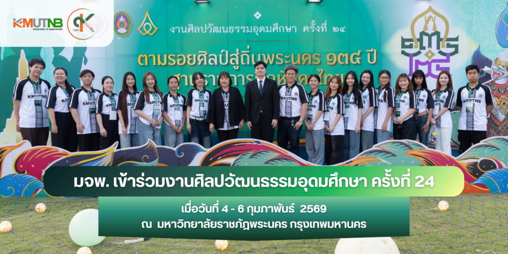 รศ.ดร.ธีรวัช บุณยโสภณ รองอธิการบดีฝ่ายกิจการนักศึกษาและศิษย์เก่าสัมพันธ์ มหาวิทยาลัยเทคโนโลยีพระจอมเกล้าพระนครเหนือ (มจพ.) นำคณะผู้บริหารและบุคลากร ประกอบด้วย นางแอนนา ประทุมรัตน์ ผู้อำนวยการกองกิจการนักศึกษา และ นางวราภรณ์ นุ่มประเสริฐ หัวหน้ากลุ่มงานกิจกรรมนักศึกษา เข้าร่วมงานศิลปวัฒนธรรมอุดมศึกษา ครั้งที่ 24 เมื่อวันที่ 4 – 6 กุมภาพันธ์ 2569 ณ มหาวิทยาลัยราชภัฏพระนคร