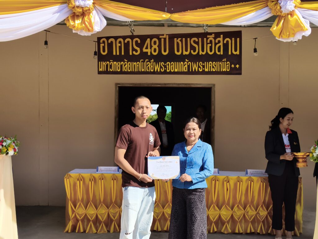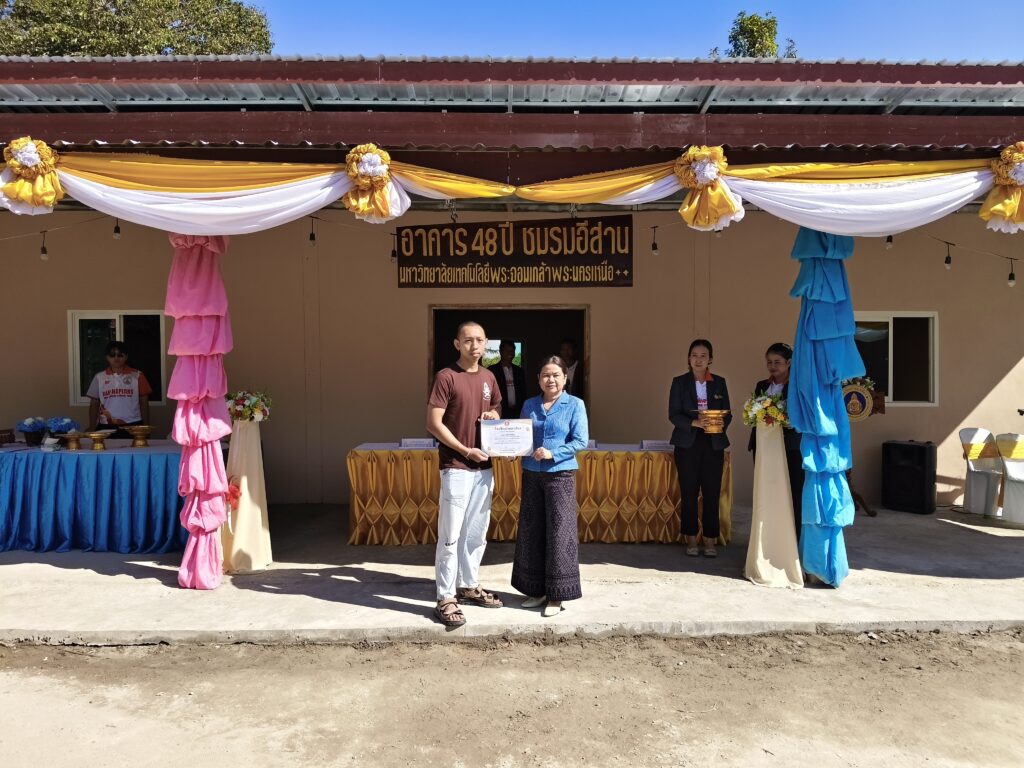 ในวาระสำคัญของความสำเร็จครั้งนี้ เมื่อวันเสาร์ที่ 22 พฤศจิกายน 2568 ได้มีการจัดพิธีส่งมอบอาคารเรียน “48 ปี ชมรมอีสาน มหาวิทยาลัยเทคโนโลยีพระจอมเกล้าพระนครเหนือ” อย่างเป็นทางการ โดยได้รับเกียรติจาก นายศุภชัย โพธิ์สุ อดีตรองประธานสภาผู้แทนราษฎร เป็นประธานในพิธีฯ