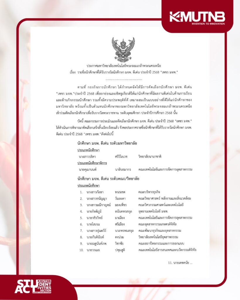 มจพ.ดีเด่น “เพชร มจพ.” ประจำปี 2568🟠