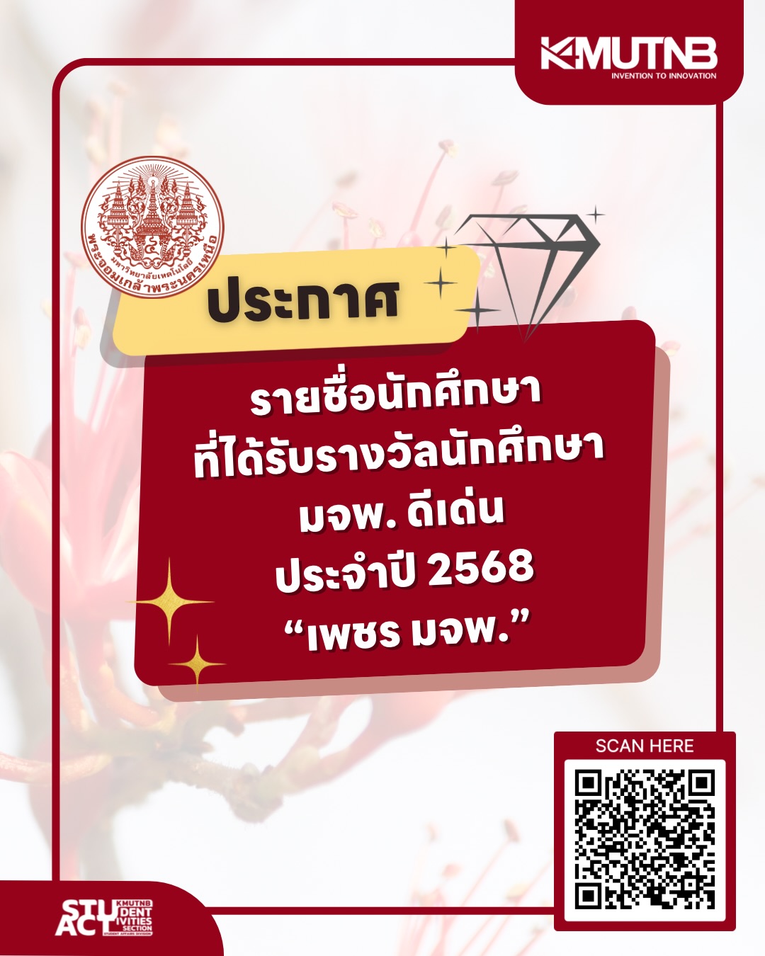 🟠ประกาศรายชื่อนักศึกษาที่ได้รับรางวัลนักศึกษามจพ.ดีเด่น “เพชร มจพ.” ประจำปี 2568🟠.🎉ขอแสดงความยินดีกับนักศึกษาที่ได้รับรางวัลในครั้งนี้ด้วยครับ👍ลำดับที่ประกาศไม่ได้เรียงตามลำดับคะแนน.ทั้งนี้กำหนดการรับรางวัลจะแจ้งให้ทราบภายหลังครับ มจพ #kmutnb